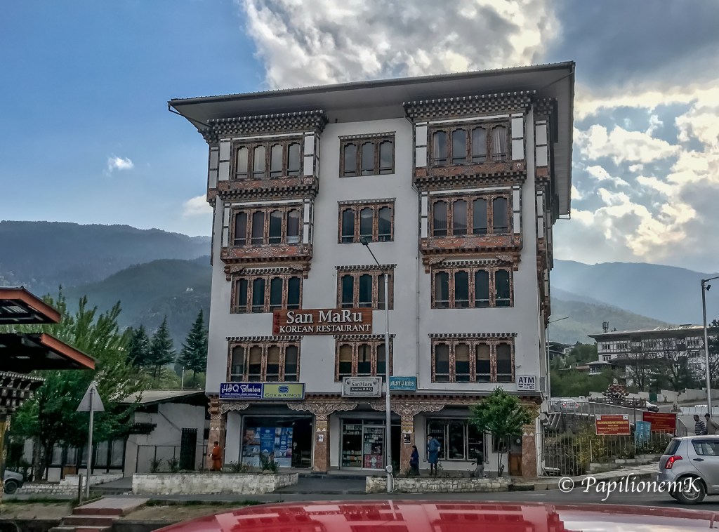 특징없는 사각형 빌딩이 아니라 부탄의 고유 건축 양식 요소를 따른 주택과 빌딩들이 들어서 있다보니 운치도 있고 부탄만의 독특한 매력을 강하게 남기는 효과가 있었다.