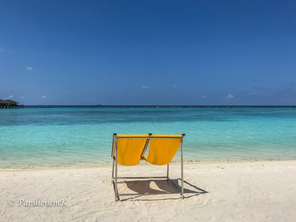 The bright-blue sea is surely an eye-catching scene in Maldives.