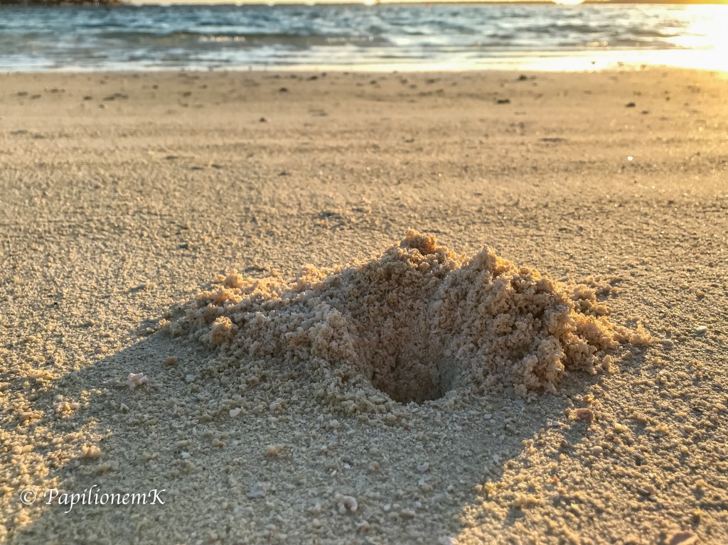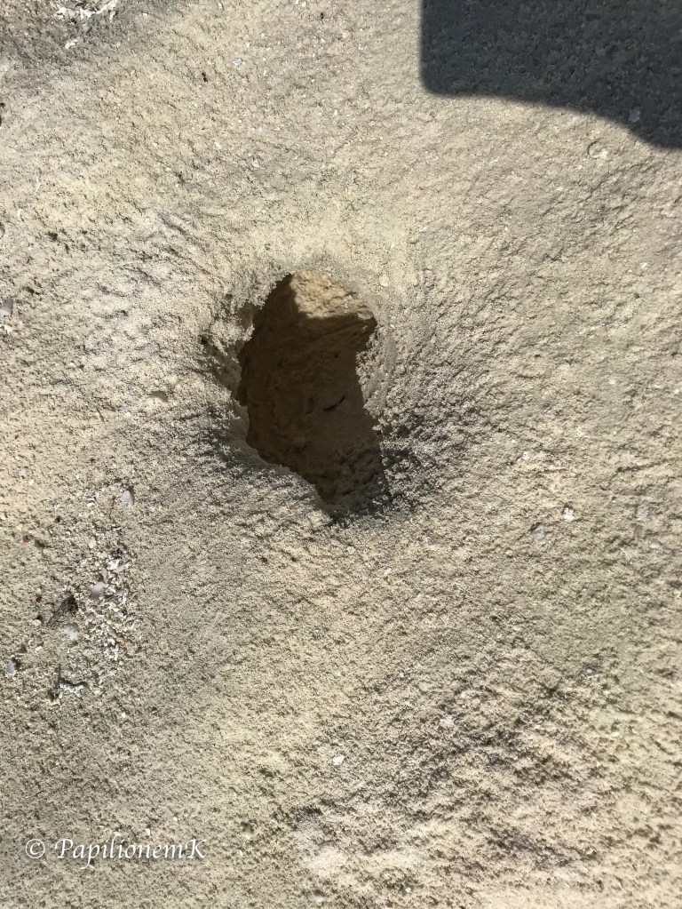 But the most impressive thing, at least to me, was at the sand–lots of mysterious holes. Holes were in many sizes, and they seemed to be built by someone with an intention. But who did that for what?