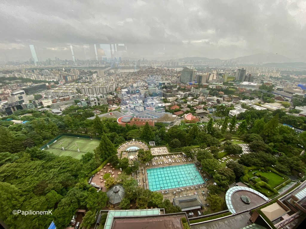 숙소는 우리가 좋아하는 남산 그랜드하얏트로 정하였다. Executive suite로 2박 예약을 하였고, 18층으로 배정받았다. 호텔 마케팅에 대해 무지하긴 하나, 스위트룸 이름은 허세스럽다는 생각을 떨쳐 버릴 수 없다. 젠체하고 가식적인 이름들! 주니어 간부(부장쯤 되나?), 간부(상무?), 사장, 왕족을 위한 스위트룸 등등. 작가의 스위트룸, 예술가의 스위트룸, 사진가의 스위트룸, 할머니의 스위트룸 등등 이런 스위트룸은 왜 없는 것일까? 여하튼 이번에 머문 스위트룸은 아담한 사이즈에 낡은 룸이었지만, 편했으니 되었다. 이미 국내를 비롯해 다양한 국가에서 다수의 호텔 체인의 각종 스위트룸에 머문 경험에 비출 때 이번 숙박은 딱히 기록에 남길만한 사항은 없었다. 한편으론, 경험한 세부사항을 모두 기록으로 남기는 성실함이 없기 때문에 일명 여행 블로거가 되지 않은 것이다. 아래 사진들은 모두 호텔 창문을 통해 찍은 풍경이다.